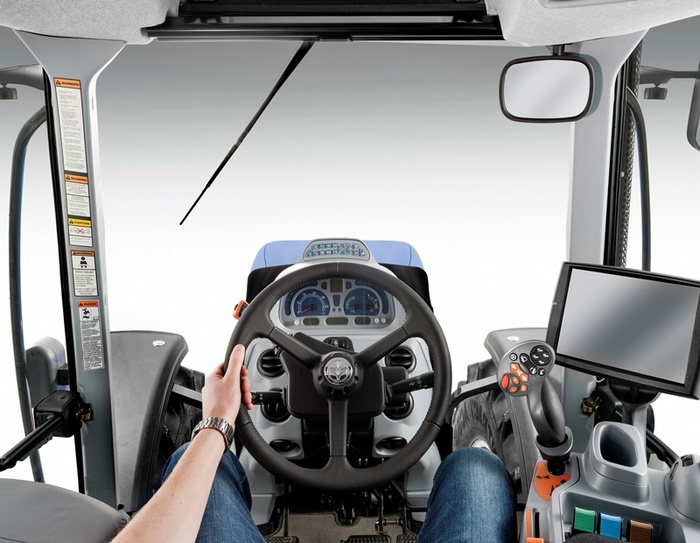 Těžké tahové práce zvládá T7 s nářadím adekvátního záběru velmi dobře. Šestiválcový motor, dostatečný rozvor a šest stupňů pod zatížením. Práci usnadňuje také řada automatizačních prvků.